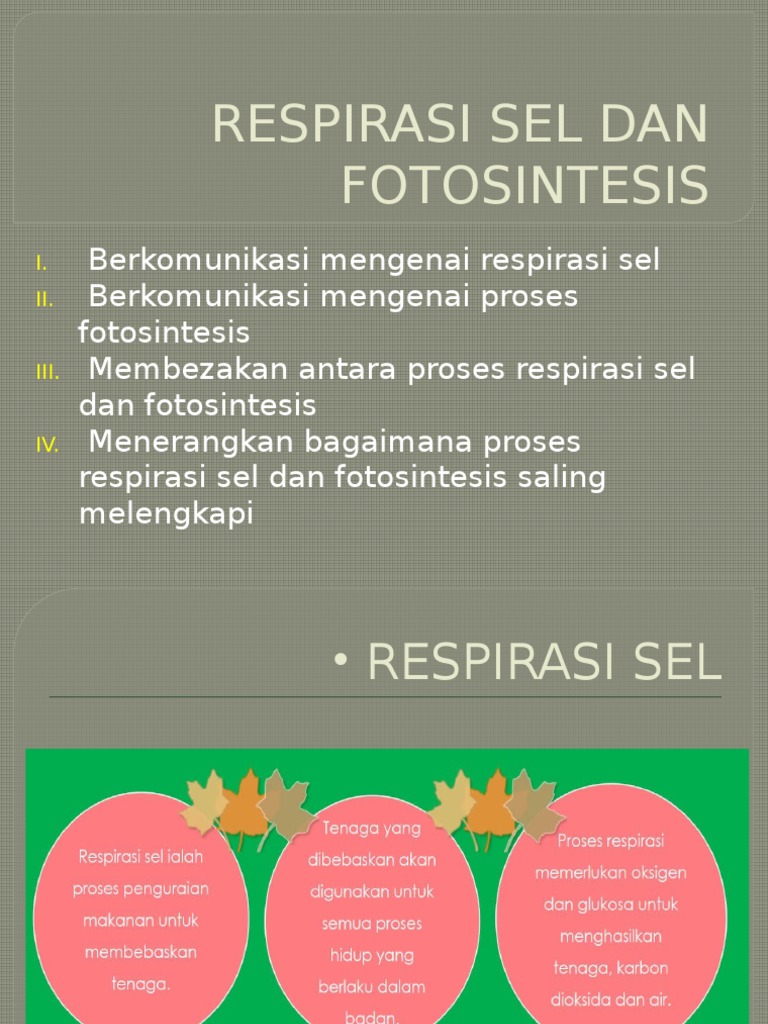 Respirasi Sel Dan Fotosintesis Sains Tingkatan 1